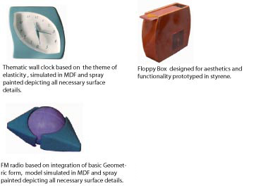 Important Learning Prototyping in available materials using appropriate manufacturing technologies for form varification, ergonomics etc. Product detailing. Plastics as a designer’s material. Conceptualization Techniques. Form generation techniques. Product display systems and Modular design. Skills utilised Working in plastics for model making using various plastic processing techniques. Patern making in MDF for prototyping. Working with sheet metal, surface treatment and coating. Applications of paints for surface enhancements and aesthetics. . |